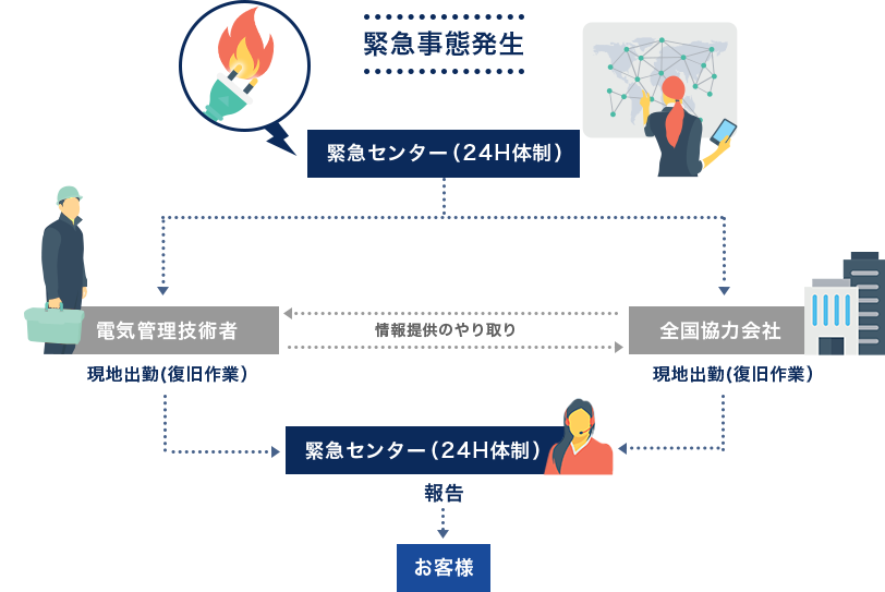 電気主任技術者免状の交付を受けた技術者が対応いたします。